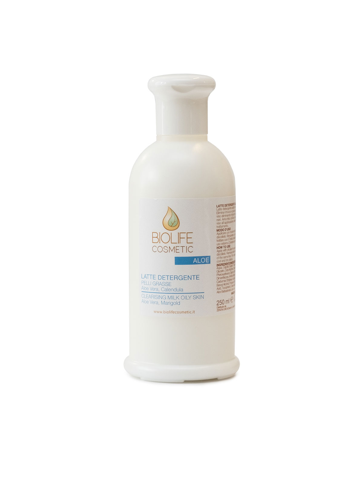 Il latte detergente pelli grasse della linea Aloe di Biolife Cosmetic è studiato appositamente per pulire in profondità le pelli grasse e impure.